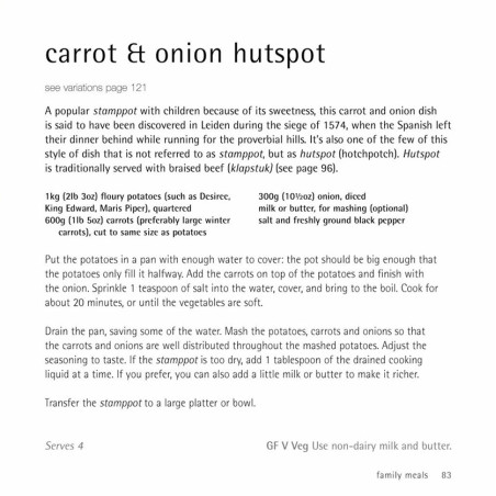 Combine curly endive, apples, kale or sauerkraut with potatoes to make a delicious stamppot, or try a hunter’s stew, braised beef with cloves or nasi goreng. For dessert there’s a Limburg apricot pie, creamy bavarois or vanilla custard.