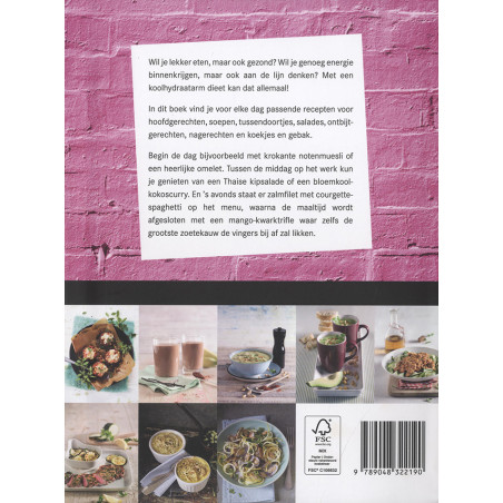 Begin de dag bijvoorbeeld met krokante notenmuesli of een heerlijke omelet. Tussen de middag op het werk kun je genieten van een Thaise kipsalade of een bloemkool-kokoscurry. En ’s avonds staat er zalmfilet met courgettespaghetti op het menu, waarna de maaltijd wordt afgesloten met een mango-kwarktrifle waar zelfs de grootste zoetekauw de vingers bij af zal likken.